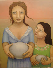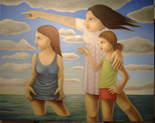 Las mujeres que podrían ser rocas o cariátides sostienen con gracia y abandono sus cabelleras; en Mujeres en el mar hay viento, nubes, es un día de playa: la pintura metafísica expone a lo trascendente la fragilidad de los accidentes cotidianos porque la eternidad está hecha de detalles menudos.